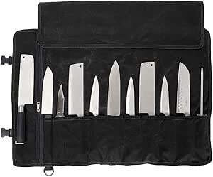 Qees Chefs Knife Bag 11 Slots Knife Roll For Kitchen Knife Tools Up To 18 8 Waxed Canvas Japanese Knife Set Case Portable Travel Tool Roll Pouch For Meat Cleaver Knife Sharpener Black Home Kitchen Amazon Com